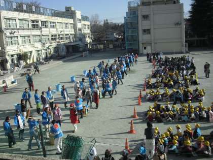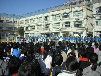 12/8 もちつき大会ー1 公開日 2012/12/08 更新日 2012/12/08 校長室より 今日はさわやかな快晴で、気温もぐんぐんと上がり絶好のもちつき日和となりました。今年もたくさんの保護者や地域の方々のご協力のもと、盛大にもちつき大会が開催されました。大きなボイラーが2基、臼が10個も出ました。 はじめの会では、副実行委員長の柳田文雄様から、もちつきに臨むにあたっての心構えについてお話をいただきました。次に1年生の代表児童による、とても元気なあいさつの言葉がありました。