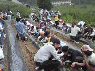 午後は、1時から農作業体験です。川場村の方々に教えていただきながら、サツマイモの苗を植えています。