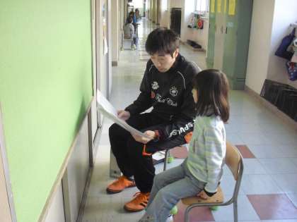 各担任の先生から通知表が渡されました。子どもたちは、もうどきどきです。どのクラスも、先生が子どもたち一人一人に丁寧に言葉を添えながら手渡しています。