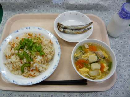 12/9 本日の給食 公開日 2013/01/09 更新日 2013/01/09 給食 〜今日の献立〜 子ぎつねごはん 牛乳 焼きししゃも 卵雑煮 今日から3学期の給食が始まりました。3学期も安心・安全でおいしい給食を子どもたちに届けられるように頑張りますので、よろしくお願いします。 今日は、お正月献立で「卵雑煮」を出しました。白玉粉と小麦粉を混ぜて作った白玉もちを入れました。今日も残菜は少なく、とてもうれしかったです。 3学期も残さず食べて、元気に過ごしてほしいです。 食材がとれたところ・・・ 閉じる 米…北海道 鶏ひき肉…岩手県 鶏卵…青森県 ししゃも…北欧 こまつな…埼玉県 にんじん…千葉県 さやいんげん…沖縄県 はくさい…茨城県 長ねぎ…千葉県