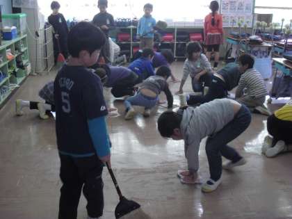 1/10 床を磨きながら心を磨く自問清掃 公開日 2013/01/10 更新日 2013/01/10 校長室より 3学期も、もちろん自問清掃です。各学年の発達段階に合わせての取り組みですが、おしゃべりをしないで掃除をしている姿は、とても美しく心の成長を感じます。がまんの心、見つける心、親切な心を磨いています。自分たちが使用したところは自分たちでしっかりと掃除をします。