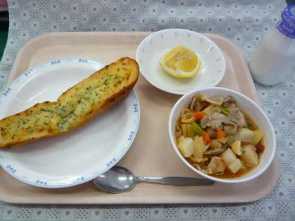 「体ぽかぽかあったかメニュー」ということで、にんにくやとうがらしを入れたメニューにしました。