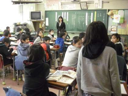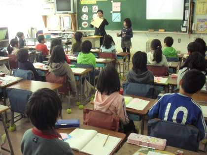 今日は、若手教師の中で2人の先生(浅田先生、森下先生)の授業研修がありました。5年生の浅田先生は国語の俳句、2年生の森下先生は算数の分数の授業です。講師には中学校の校長先生だった岡部先生が来てくださいましたが、どちらのクラスも子どもたちが一生懸命に学習している姿をたくさん褒めていただきました。