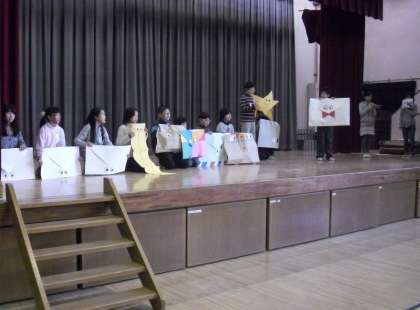 1/29 児童集会〜図書委員会の発表〜 公開日 2013/01/29 更新日 2013/01/29 校長室より 今日の児童集会は図書委員会の発表です。「ただのしろいふうとう」の素敵なお話の朗読からはじまり、劇やクイズで子どもたちは大喜びです。インフルエンザ等の影響で練習も苦労していた図書委員会ですが、本番で最高の演技を見せてくれました。 図書委員会のみなさんありがとう。本好きの人がますます増えるように取り組んでいってください。