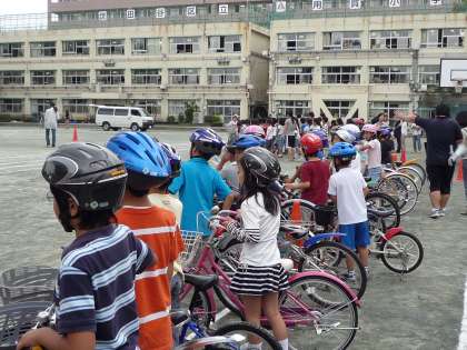 子どもたちの自転車の立派なのに驚きましたが、やはり身長にあったサドルの高さにしておくことが大切です。ブレーキも大人の人が毎月1回は点検することです。また、夜は自転車に乗らないのが一番ですが、どうしても乗る場合にはライトが必要です。