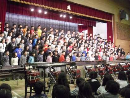 今日の音楽集会は5年生の合唱と合奏の発表です。合唱曲は「COSMOS」、合奏曲は「ライジングサン」です。合唱は、透き通るような歌声で、強弱をつけ心を込めて歌っていました。合奏は、とっても迫力のある演奏でした。手拍子もあり大いに盛り上がりました。5年生の心が一つになった素晴らしい演奏でした。