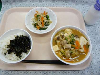 2/22 本日の給食 公開日 2013/02/22 更新日 2013/02/22 給食 〜今日の献立〜 ごはん 韓国風ふりかけ 牛乳 チゲ豆腐 塩ナムル 今日のチゲ豆腐には、「たら」を使いました。たらは冬が旬で、高タンパク、低脂肪のヘルシーな魚です。チゲ豆腐には、他にもにんじんや白菜、長ねぎなどたくさんの野菜も入っていて、栄養満点です。残菜もほとんどなく、とてもうれしかったです。 食材がとれたところ・・・ 閉じる 米…北海道 鶏肉…岩手県 たら…ロシア にんにく…青森県 にんじん…千葉県 しめじ…長野県 はくさい…兵庫県 長ねぎ…千葉県 にら…栃木県 もやし…栃木県