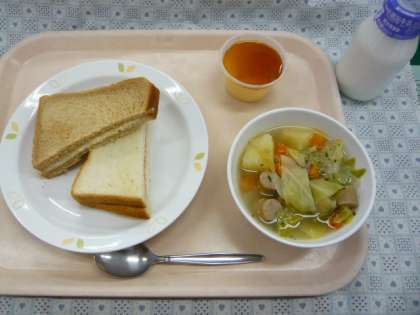 あたたかいポトフは、寒い時期にぴったりの料理です。野菜やじゃがいも、お肉などたくさんの食材を使っていて、栄養満点です。今日も残さずに食べてくれるとうれしいです。
