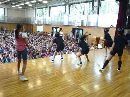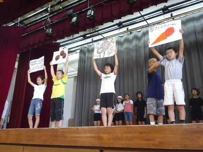 こんなストーリーと、子どもたちの真剣な演技力で、全校児童の視線を釘付けにします。