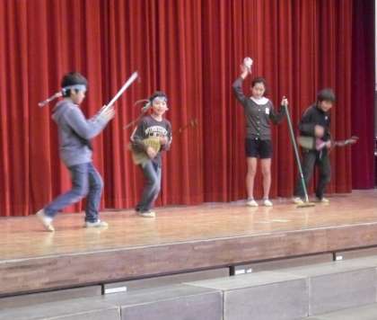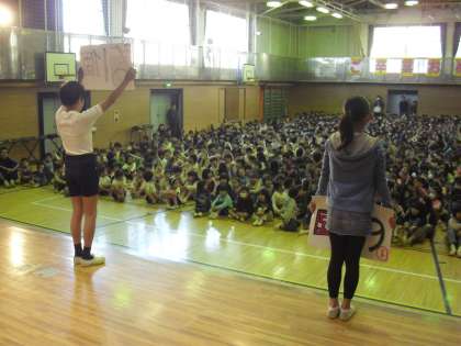 今日の児童集会は整美委員会の発表です。劇ありクイズありで子どもたちは大喜びです。整美委員会を中心に、今年度も自問清掃に力を入れて取り組んできました。先日は岐阜県の先生が本校の自問清掃を見学に来られ、感激をしてお帰りになりました。本校は、古い校舎ではありますが、「床を磨きながら心を磨く」自問清掃にこれからも継続的に取り組んでいきます。