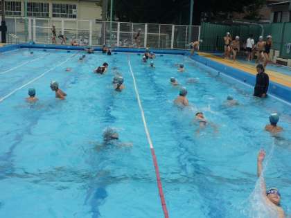 6/29 梅雨の晴れ間の水泳学習5年生 公開日 2009/06/29 更新日 2009/06/29 校長室より 今日の天気予報は、確か曇りか雨だったはず・・・。でも朝から夏の太陽がふりそそぐ晴天になりました。幸運だったのが5・6年生です。気温30度以上、水温も23度以上と絶好の水泳日和になりました。 5年生の水泳学習の様子です。 低学年の水泳の日が晴れてほしいのです。