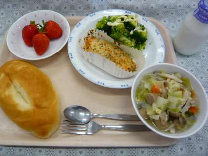 マカロニにはいろいろな形があり、グラタンやサラダなど様々な料理に使われています。今日も残さずに食べてくれるとうれしいです。