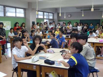 7/1 家庭科の授業研究6年生 公開日 2009/07/01 更新日 2009/07/01 校長室より 昨日は、東京都小学校家庭科教育研究会の授業研究会がありました。用賀小学校の日景先生が6年4組の子どもたちと栄養についての授業をしました。食材カルタを使って、興味関心を高めながら、栄養素とバランスのよい食事について学習しましたが、子どもたちも意欲的に取り組んでいました。