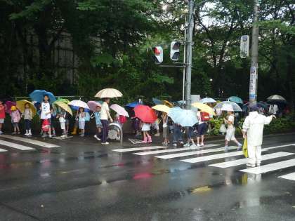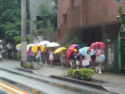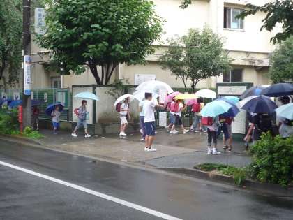 これからも梅雨が続きます。雨の日の集団登校は、おくの大人の目での見守りが大切です。学校でも専科・高学年の教師を中心としての交通整理を続けます。
