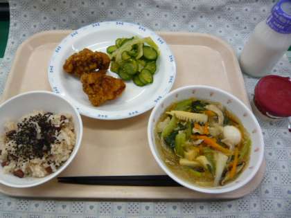 今日は、今年度最後の給食でした。卒業と進級をお祝いして、お赤飯を炊きました。4月に比べると、給食の残りも格段に減り、子供達の成長を実感しています。1年間、給食へのご理解とご協力を頂き、本当にありがとうございました。