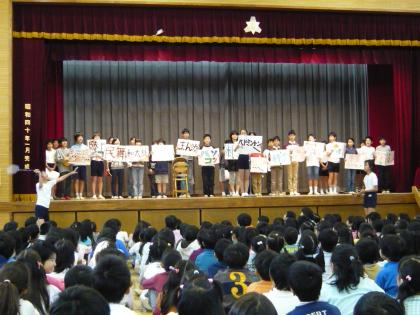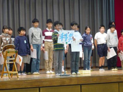 2/22 クラブ発表会 公開日 2008/02/22 更新日 2008/02/22 委員会・クラブ活動 朝の児童集会の時間に全クラブの紹介がありました。短い時間ですが、実演など交え工夫して発表できました。