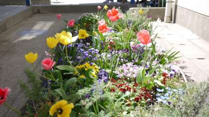 用賀小学校を訪れたさいには、これらの花たちを見ながら