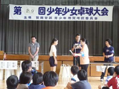 今日は、青少年用賀地区委員会主催の卓球大会がありました。用賀小学校からは、男子15名女子1名系16名が参加しました。この一週間は、先生にお願いして朝練習をしてのぞみましたがそう簡単には勝たせてもらえません。フルセットの戦いが繰り広げられて、どの試合も手に汗握る熱戦でした。