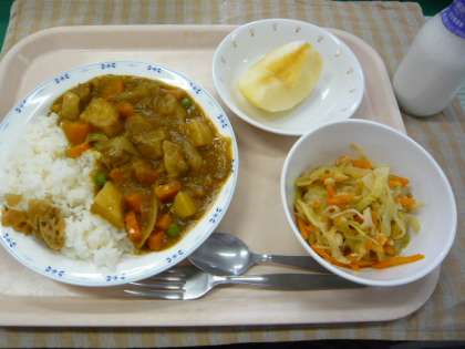 調理員さんが、長い時間、焦がさないようにかき混ぜ続けて作ってくれています。残さずに食べてくれるとうれしいです。