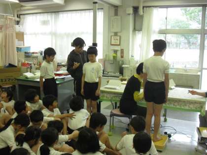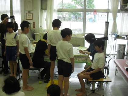 4/24 発育測定 公開日 2013/04/24 更新日 2013/04/24 今日のできごと 4月の学校では子供たちの健康を大切にした発育測定や様々な検診をしています。今日は3,4年生の発育測定。身長、体重、座高を測定します。自分の体を知ることは健康の第一歩です。