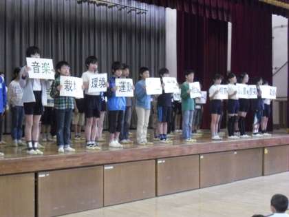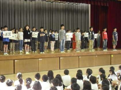 前期委員会発表集会 公開日 2013/04/25 更新日 2013/04/25 委員会・クラブ活動 前期の運営委員、代表委員、各委員長が決まり、いよいよ用賀小学校児童会がスタートします。今日の集会で前期学校の中心となる子供たちがそれぞれ自分の決意をしっかりと述べました。皆礼儀正しく、はきはきとしていて、今後の活躍が楽しみです。