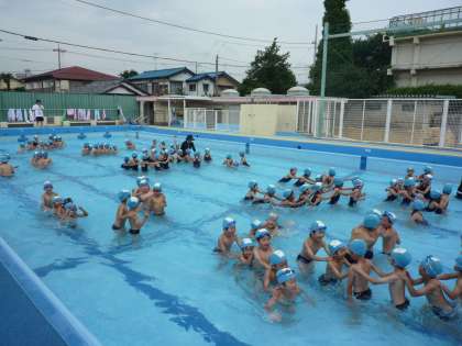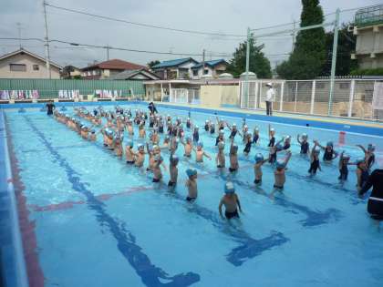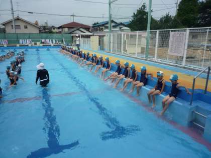 7/9 気持ちのよいプール 1年生 公開日 2009/07/09 更新日 2009/07/09 校長室より 1年生がやっとプールに入れました。本当によかった!風が少しありましたが、水温も高くきもちのよい学習ができました。 1年生は、大きなプールでの学習は初めてなのですが、先生のお話をよく聞いて水遊びを楽しみました。来週にもう一回入れると、夏の水泳教室の準備ができるのですが・・・。