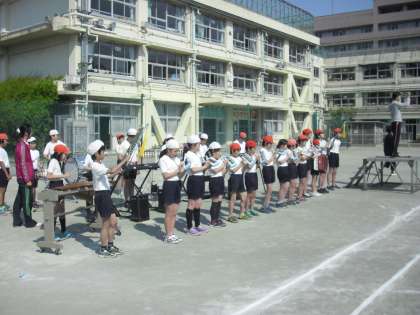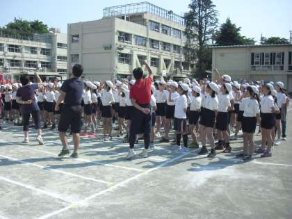 5/8 全体練習 公開日 2013/05/08 更新日 2013/05/08 今日のできごと 今日の全体練習は応援歌「ゴーゴーゴー」の練習です。赤も白も大きな歌声で真剣勝負。子供たちの元気のいい歌声は用賀小学校の宝です。これも日頃の学習の成果です。用賀小学校の運動会は日常の学習とのつながりを大切にしています。音楽係の演奏も見事でした。