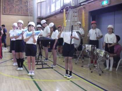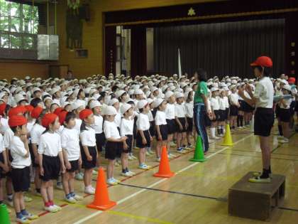 5/20 全体練習1 公開日 2013/05/20 更新日 2013/05/20 今日のできごと 今日は雨天のため体育館での練習となりました。まずは閉会式の練習。運営委員の子供たちの進行ははきはきとした言葉遣いでとても上手です。また、音楽係の伴奏と代表の子供の指揮に合わせて全員で元気いっぱい校歌を歌いました。
