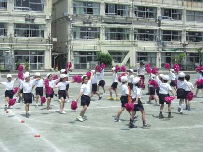 5/22 1年学年練習 公開日 2013/05/22 更新日 2013/05/22 今日のできごと 初めは徒競走(40m走)の練習。コースのラインから出ないで力一杯走ることがめあてです。その後表現の練習をしました。ジブリの音楽に合わせて、手にボンボンを持って元気に踊ります。いくつかある隊形移動も自分たちで考えてすることができました。1年生の演技・競技をどうぞお楽しみください。