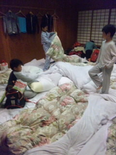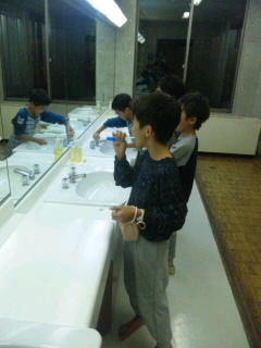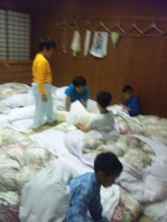 就寝の準備です。明日の登山に備えて今夜は早く寝ることでしょう。健康観察をしましたが体調の悪い子はいません。みんな元気です。