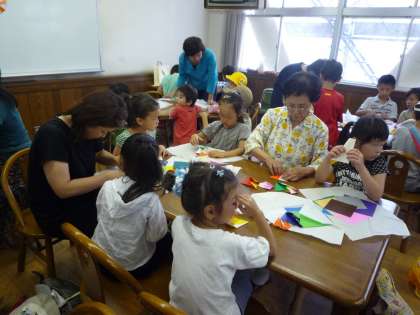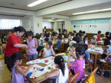 7/29 スマイルスクール 折り紙で遊ぼう 公開日 2009/07/29 更新日 2009/07/29 校長室より 毎年、スマイルスクールでの折り紙教室でランチルームがきれいになります。今年は、今までの花火の装飾が「気球に夢をのせて」に変わります。 子どもたちと地域の方々が折り紙で飾ってくださるのがとても楽しみです。 100人を超える子どもたちが集まりましたが、帰りに自分のおった気球を持って嬉しそうでした。 ありがとうございました。