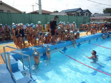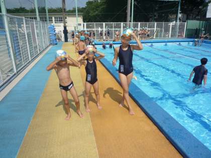 7/30 水泳指導ー検定ー 公開日 2009/07/30 更新日 2009/07/30 校長室より 今日の水泳指導は検定でした。みんながんばって、いろいろな泳ぎに挑戦しました。 たくさんの子どもたちが検定に合格しました。もう一歩という子もいますが、夏休みのプールはまだまだあります。しっかり練習して8月6日(木)の検定日にがんばってください。