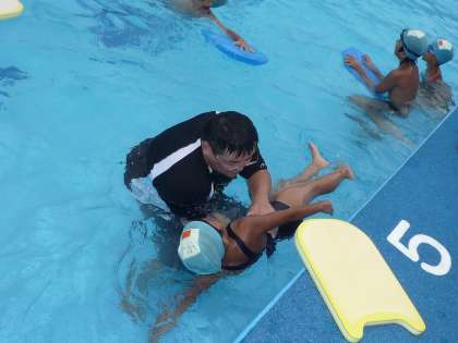 7/31スマイルスクール (25メートル完泳) 公開日 2009/07/31 更新日 2009/07/31 校長室より 今日のスマイルスクールは、25メートルを泳ぎきることを目標とする子達の教室です.3回目が終わった3時過ぎから4時半までマンツーマンに近い指導でした。みんなずいぶんと上手になりました。もちろん25メートル泳げるようになって嬉しそうに帰って行く子もたくさんいました。 何より苦手克服、やる気いっぱいの子達に拍手です。