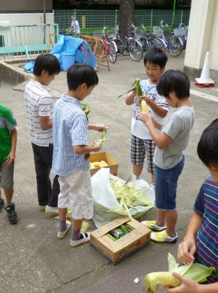 今日の給食には、今が旬の「とうもろこし」を出しました。そこでクイズです。とうもろこしは、いつとったものが一番おいしいでしょうか?