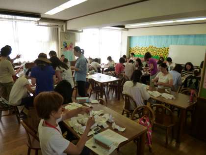 8日の月曜日、朝からランチルームに集結した、スマイルスクールのお手伝いのみなさん。