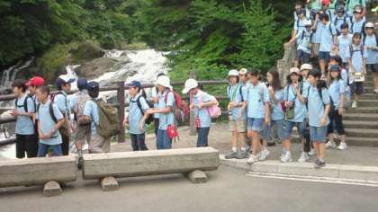 竜頭の滝に着きました。 少し時間はおしていますが、これから宿舎に向かって出発します。