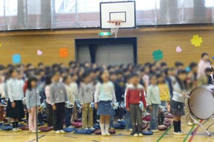 少し照れくさそうに6年生が「用賀小大すき!」のBGMと手拍子にあわせて入場しました。5年生の運営代表委員が中心になって会が進められました。まずは、1年生の出し物です。呼びかけと「にんげんていいな」の歌と「さんぽ」の合奏をしました。もういつでも2年生になっていいくらいの、立派な1年生の発表でした。
