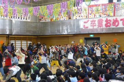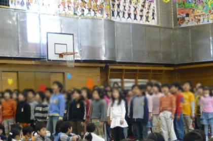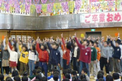 3年生は、寸劇つきの呼びかけと「栄光の架け橋」の歌の発表をしました。どの学年のどの子も真剣に6年生を送るために発表していましたが、3年生はそれに力強さが加わり気迫を感じるほどでした。