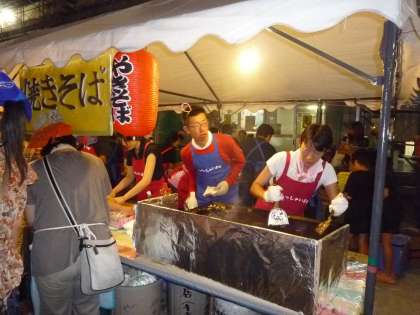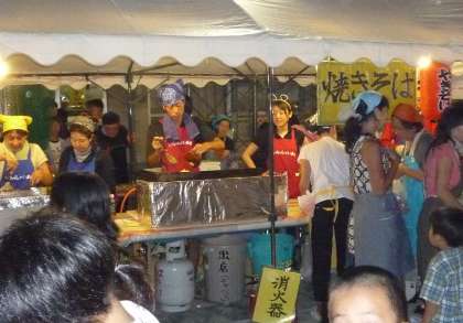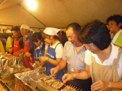 先生方の焼くやきそば、おこのみやき、焼き鳥は飛ぶように売れていきます。先生方も子供たちもみんなうれしそう・・・!