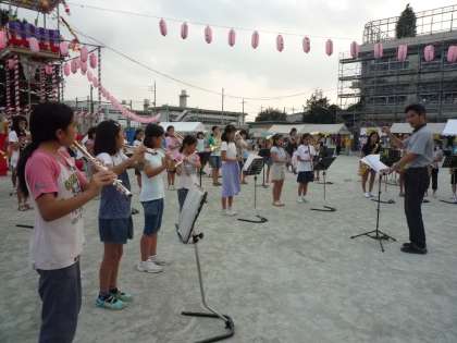 今日は、用賀中学校の臨時任用の先生もお手伝いをしてくれました。相変わらず先生方のやく焼きそばや、焼き鳥をはじめとする食べ物は大盛況です。おやじの会や各チームのゲームコーナーも小さな子どもたちがいっぱいで長い列ができていました。