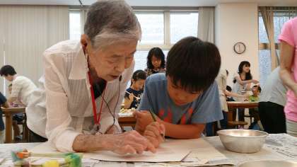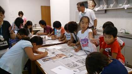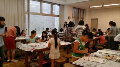 エコバック作りは、まだ模様を付け足りないというお子さんも多かったようです。 8月2日(金)〜31日(土)までの毎金土曜日、14:00〜16:00に行われる 100円ワークショップにこのエコバックをもってくれば、無料で続きを行わせてもらえると美術館の方に教えていただきました。もし、やり足りなかったという人は参加してみてはいかがでしょうか。