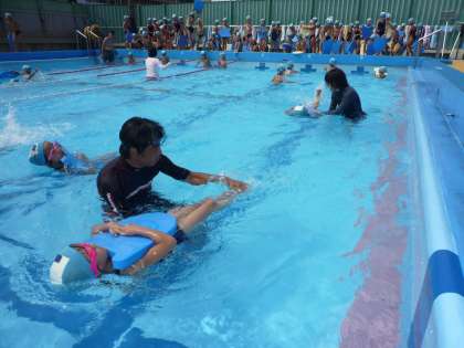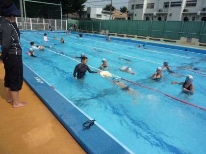 8/24 元気いっぱい水泳教室 公開日 2009/08/24 更新日 2009/08/24 校長室より 夏休みの水泳教室もあと5回となりました。 少々肌寒い天候ではありましたが、 子どもたちはいつも元気いっぱいです。 先生方もとても熱心で、情熱あふれる指導が行われています。