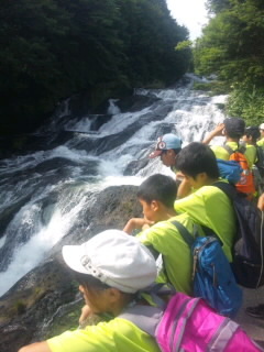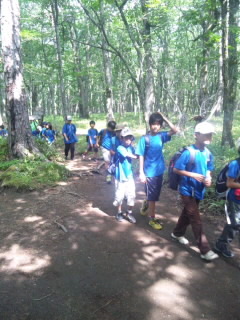 日光林間学園1日目2 公開日 2013/07/30 更新日 2013/07/30 校長室より 湯滝を見てハイキングに出発。男体山を見ながら戦場ヶ原を歩きました。予定通り竜頭ノ滝に到着。美味しいリンゴジュース飲み、これから宿泊先「風和里」に向かいます。