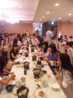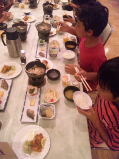 日光林間学園1日目4 公開日 2013/07/30 更新日 2013/07/30 校長室より 日光林間学園、最初の夕食。美味しくボリュームのあるお料理をたくさん食べていました。その後はお楽しみの演芸大会。どの発表も工夫した内容でとても楽しく大変盛り上がりました。今日の予定は全て終了。就寝の時刻となりました。みんな元気です。おやすみなさい。