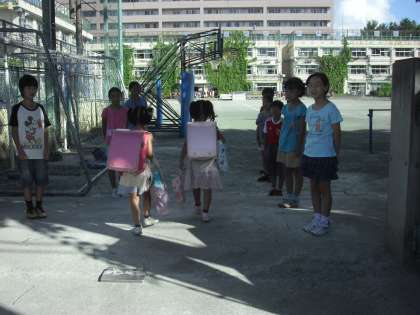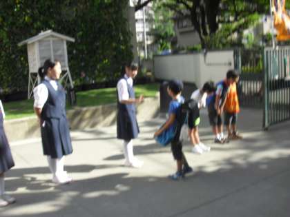 今日から2学期のおはようコミュニケーションが始まりました。用賀小学校では正門と南門に子供たちが立ち、登校する子供たちと元気にあいさつをしていました。正門では用賀中学校の生徒が立ち、いっしょになってあいさつをしていました。保護者や地域の皆様にも早朝からご協力いただきました。ありがとうございました。3校が基盤となり、用賀の街全体で行われているおはようコミュニケーションは用賀の街の財産です。明日もよろしくお願いいたします。