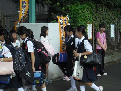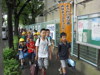 今日も用賀小学校の門では子供たちが元気のいいあいさつの声が響き渡っていました。用賀中学校では用賀小と京西小の子供たちが先生とともに門に立ち、登校する中学生とあいさつを交わしていました。また、街の所々にも保護者や地域の方が立ち、登校する子供たちとあいさつをしてくださいました。おはようコミュニケーションは学校・保護者・地域が手を取り合い、街全体でのあいさつ運動を通して、子供たちを見守り、育てるすばらしい取組です。皆様、ありがとうございました。