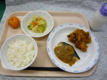 さばには、記憶力をよくする「DHA」という栄養素が入っています。残さず食べましょう。