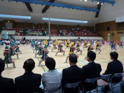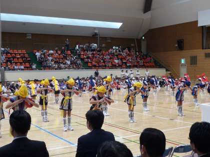 用賀小学校エイサーチームが世田谷区の区民体育大会オープニングセレモニーで演技を披露しました。砧の総合運動場の体育館での開会式でしたが、区長さんをはじめとするたくさんの方々の前で堂々の演技を見せてくれました。