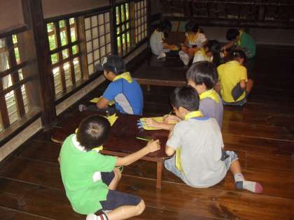 午後の初めの見学は等々力渓谷。街中にこうした風景があることに子供たちはたいへん驚いていました。身近なこうした自然を是非大切にしてほしいです。最後は次大夫堀公園に行きました。実際に古民家に入り、昔の人々の暮らしを肌で感じてきました。