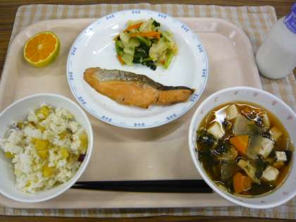 今日のごはんは、「さつまいもごはん」です。そこでクイズです。さつまいもをおいしく食べるためには、次のうちのどちらの方法で料理をするとよいでしょうか?